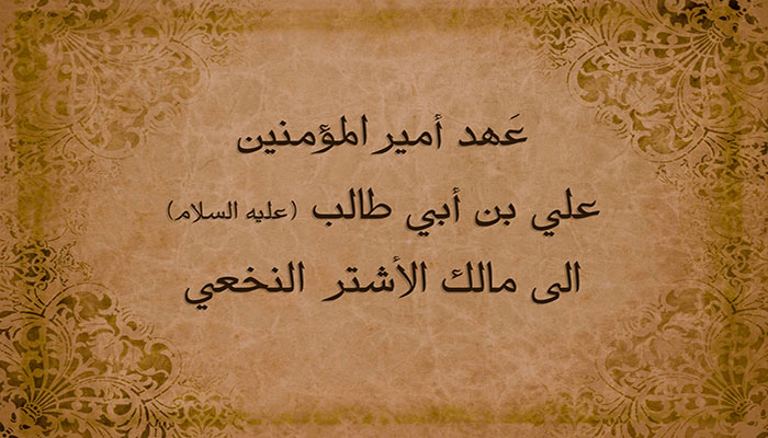 قال الدكتور علي جمعة، عضو هيئة كبار العلماء بالأزهر الشريف، إنَّ سيدنا علي بن أبي طالب أرسل محمد بن أبي بكر إلى مصر كي يكون وليًا عليها، ويسبق معاوية بن أبي سفيان لكن أعوان معاوية قتلوه على الطّريق ومثّلوا بجثّته، فأرسل مالك بن الأشتر، الذي كان بمثابة ذراعه اليمنى، وأنفذ له كتاباً يمثّل قيمة كبيرة نفاخر بها من تاريخنا الإسلامي، ذكر نص الكتاب أو العهد، على لسان الشّريف الرّضي في نهج البلاغة، وشرحه ابن أبي الحديد شرحًا واسعًا مع شرح نهج البلاغة، وكذلك كان الإمام محمد عبده مغرمًا بنهج البلاغة، لكنّه خصّ هذا الخطاب الموجه من عليّ لـمالك الأشتر بالتعليق والشّرح، خصوصًا أنه كان وثيقة من وثائق حقوق الإنسان، ونظم الحكم، وترتيب الإدارة لا مثيل له في التّاريخ، فقد كان تكليفًا من عليّ بن أبي طالب لمالك بن الأشتر وخارطة طريق لعمله في مصر.